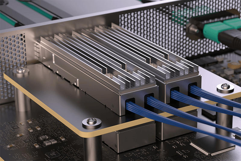 Flyover® SFP/QSFP/OSFP系统:直接连接解决方案,通过低损耗双芯电缆而非屏蔽笼附近的有损耗PCB走线路由关键信号